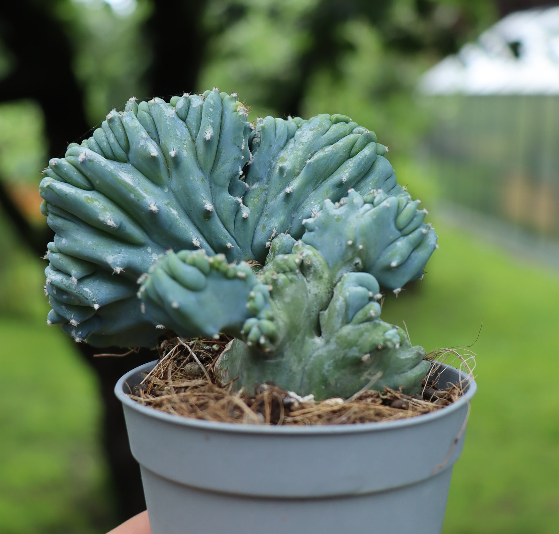 Beschreibung: Der Myrtillocactus geometrizans cristata, auch bekannt als Blaubeerkaktus, ist ein beeindruckender und schnell wachsender Kaktus, der durch seine ungewöhnliche Färbung und Form besticht. Ideal für Sukkulentenliebhaber und Sammler exotischer Pflanzen.
